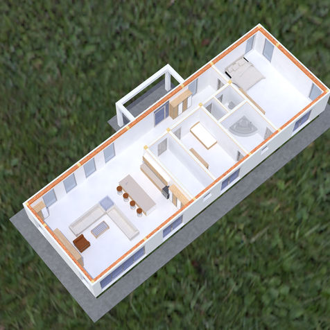 Savremeno organizovana kuća veće kvadrature sa naglašenom dnevnom zonom otvorenog tipa. Projekat uključuje prostran dnevni boravak sa kuhinjom i trpezarijom, više spavaćih soba, kupatilo, dodatni sanitarni čvor i tehničke prostorije. Velike površine i dobar raspored komunikacija čine model pogodnim za veću porodicu i dugoročno stanovanje.